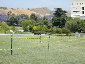 Presented at CalPoly Pomona, Corral demarcates the Engineering Meadow into choreographed sections of boundaries and inventiveness.